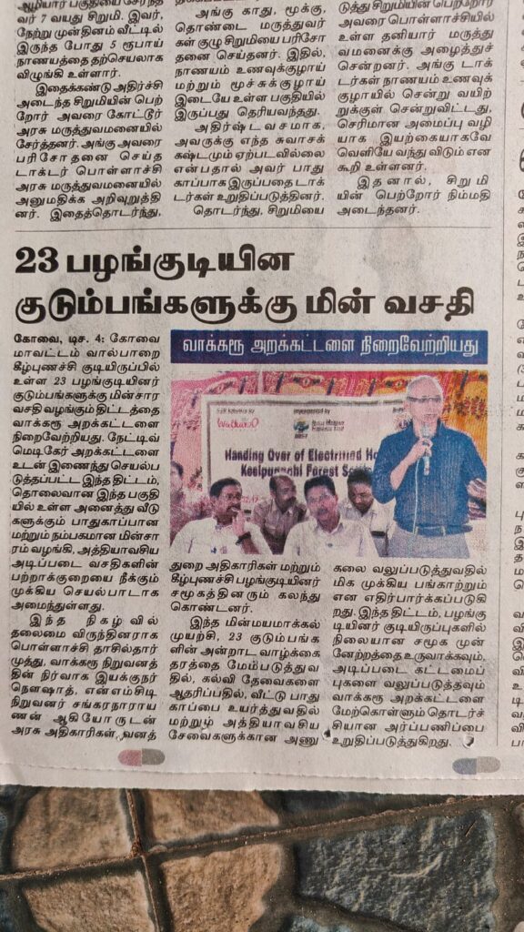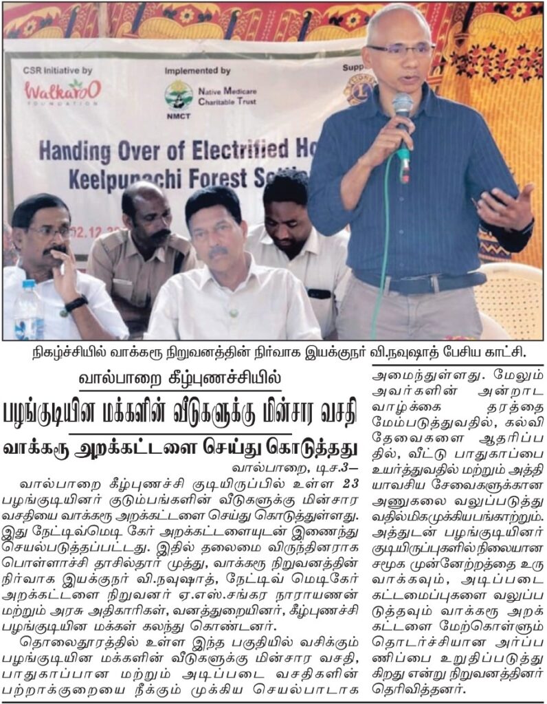 Headline – “Community Awareness program by Walkaroo Foundation and Native Medicare Charitable Trust”.Media – Hindu Tamil