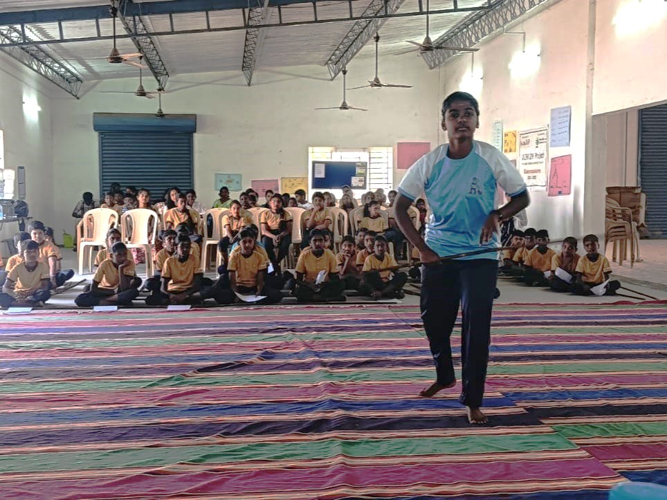 Parents, community leaders, and residents actively supported and encouraged the young participants, turning the competition into a true celebration of community spirit. Students showcased their acquired skills over the past seven months through stellar Silambam performances and graceful yoga postures.Students from Pappampatti village emerged as the overall winners in Silambam, while students from Edayarpalayam village secured the overall title in Yoga.